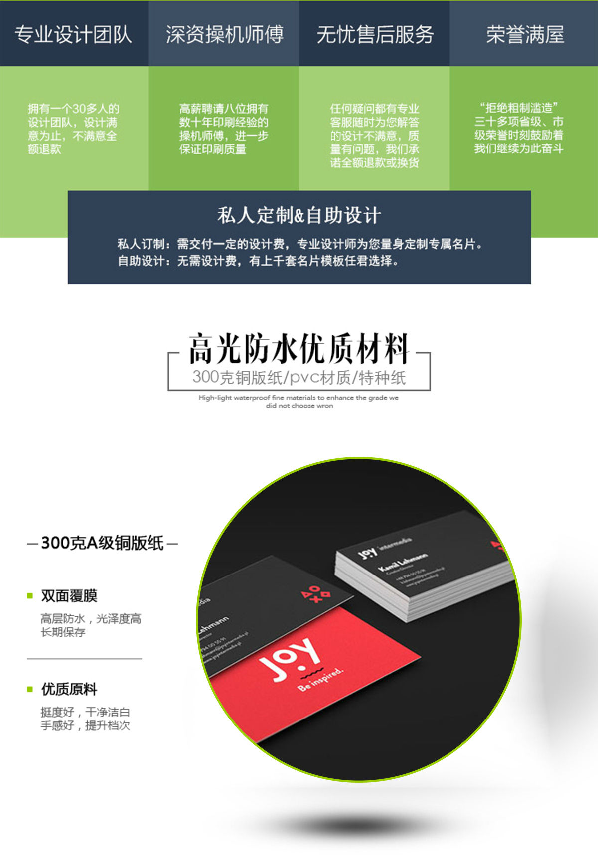 商品名称:300g铜版纸名片